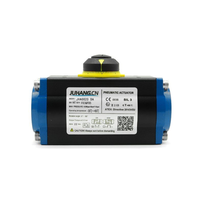 Rack et pignon Actuateur pneumatique à double action JHA0020DA, haute qualité, faible frottement, longue durée de vie, les temps de commutation sont jusqu'à plus d'un million de fois, une stabilité élevée.