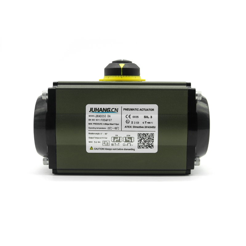 Rack et pignon Actuateur pneumatique double JHA0050DA, de haute qualité, frottement faible, longue durée de vie, les temps de commutation sont jusqu'à plus d'un million de fois, une stabilité élevée.