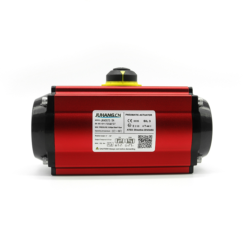 Rack et pignon Actuateur pneumatique à double action JHA0075DA, haute qualité, faible frottement, longue durée de vie, les temps de commutation sont jusqu'à plus d'un million de fois, une stabilité élevée.